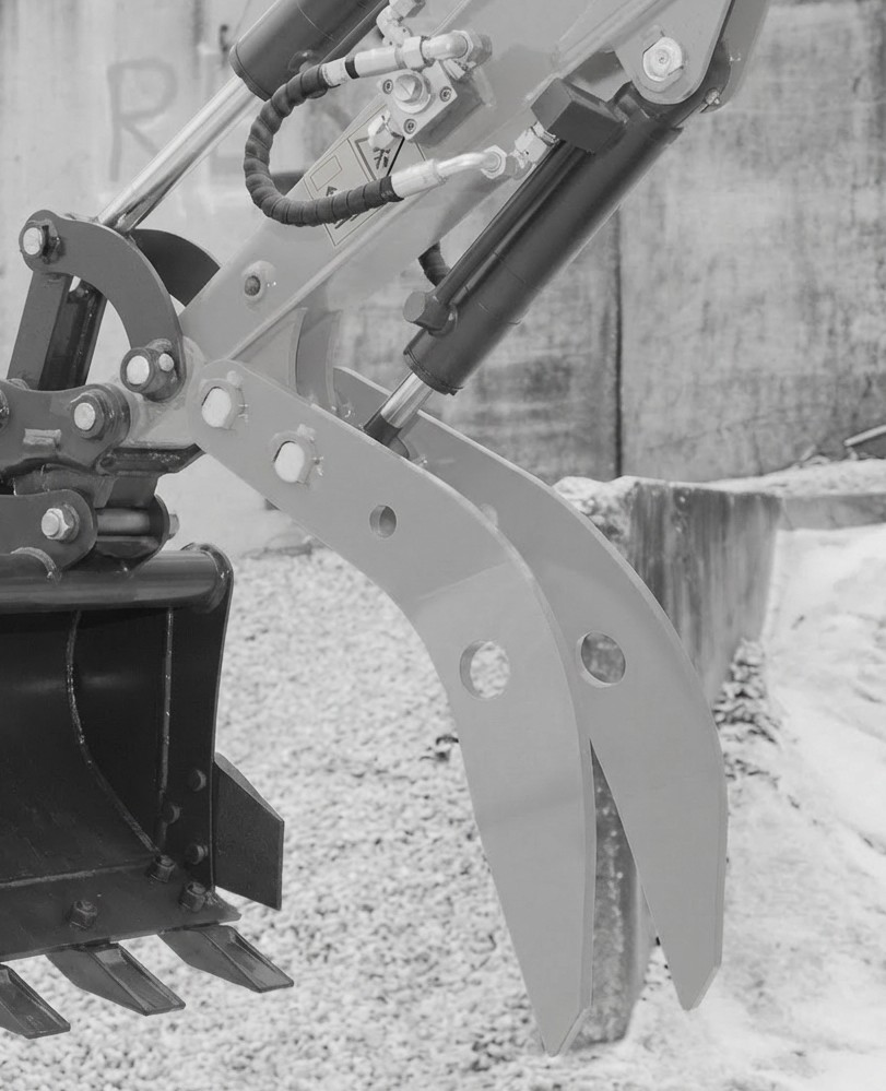 Přidržovací palec – možná náhrada kleští, uchopení a manipulace těžkými a objemnými předměty (betonové bloky, obrubníky, kameny, klády, pařezy), kontrolované a bezpečné nakládání a vykládání materiálu