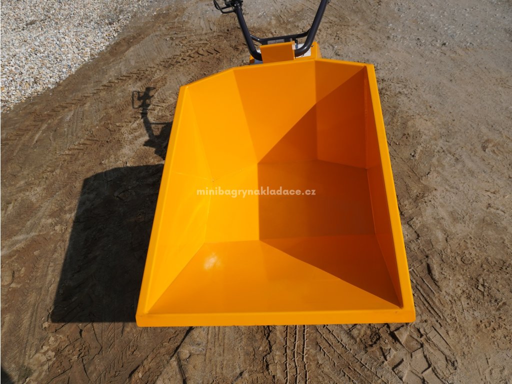 Do korby o objemu 280l je možné naložit až 500 kg nákladu a hydraulický systém zajistí její snadné vyklopení i při plném zatížení.