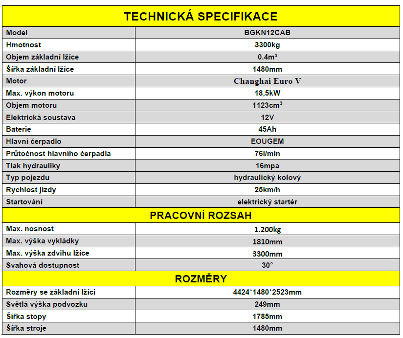 Nakladač BGKN26CAB je spolu s širokou škálou příslušenství perfektní volbou pro všechny, kdo potřebují výkonný a spolehlivý stroj s malým poloměrem otáčení a vysokou rychlostí jízdy, který usnadní a zrychlí práci. Investujte do kvality a zvyšte svou efektivitu!