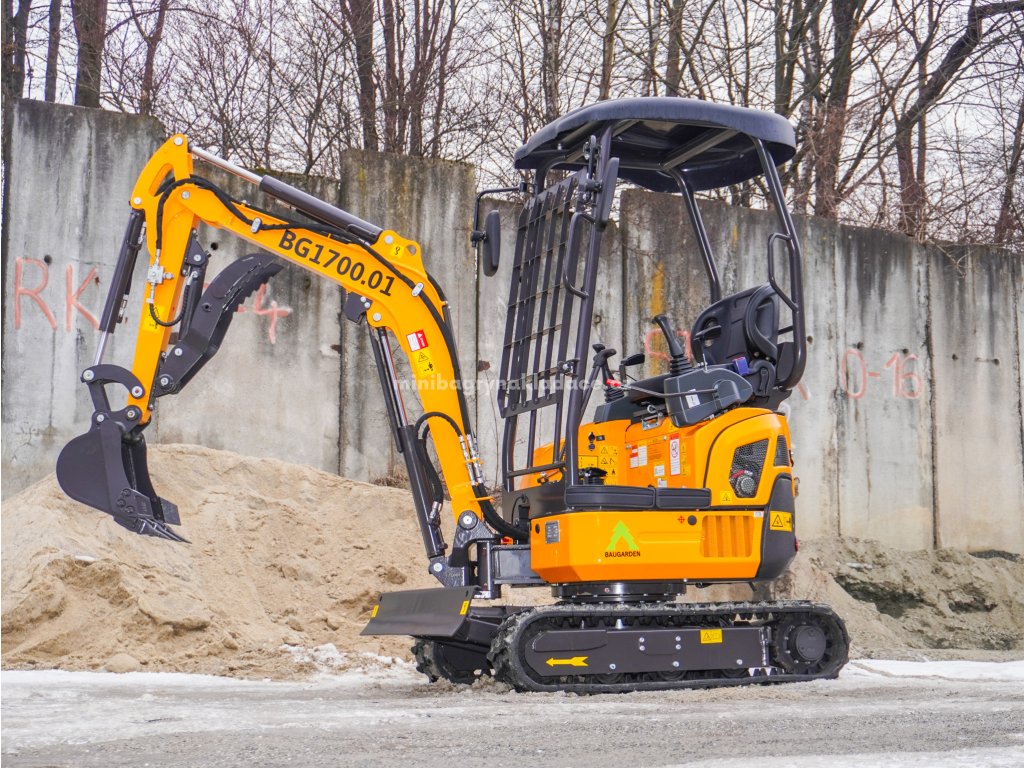 Minibagr BAUGARDEN BG1700.01 je konstruován a vyráběn s cílem garantovat jeho spolehlivost a dlouhou životnost. Je vybaven špičkovým, vodou chlazeným, 3válcovým japonským motorem KUBOTA D902 o výkonu 11,8kW/2400ot/min splňujícími nejpřísnější emisní limity normy Euro 5, hlavním čerpadlem s průtočností 22l/min s chladičem hydraulického oleje a 2 rychlostními motory pro pojez. Čepy i oka pístnic jsou uloženy v pouzdrech a mazací body jsou snadno přístupné.