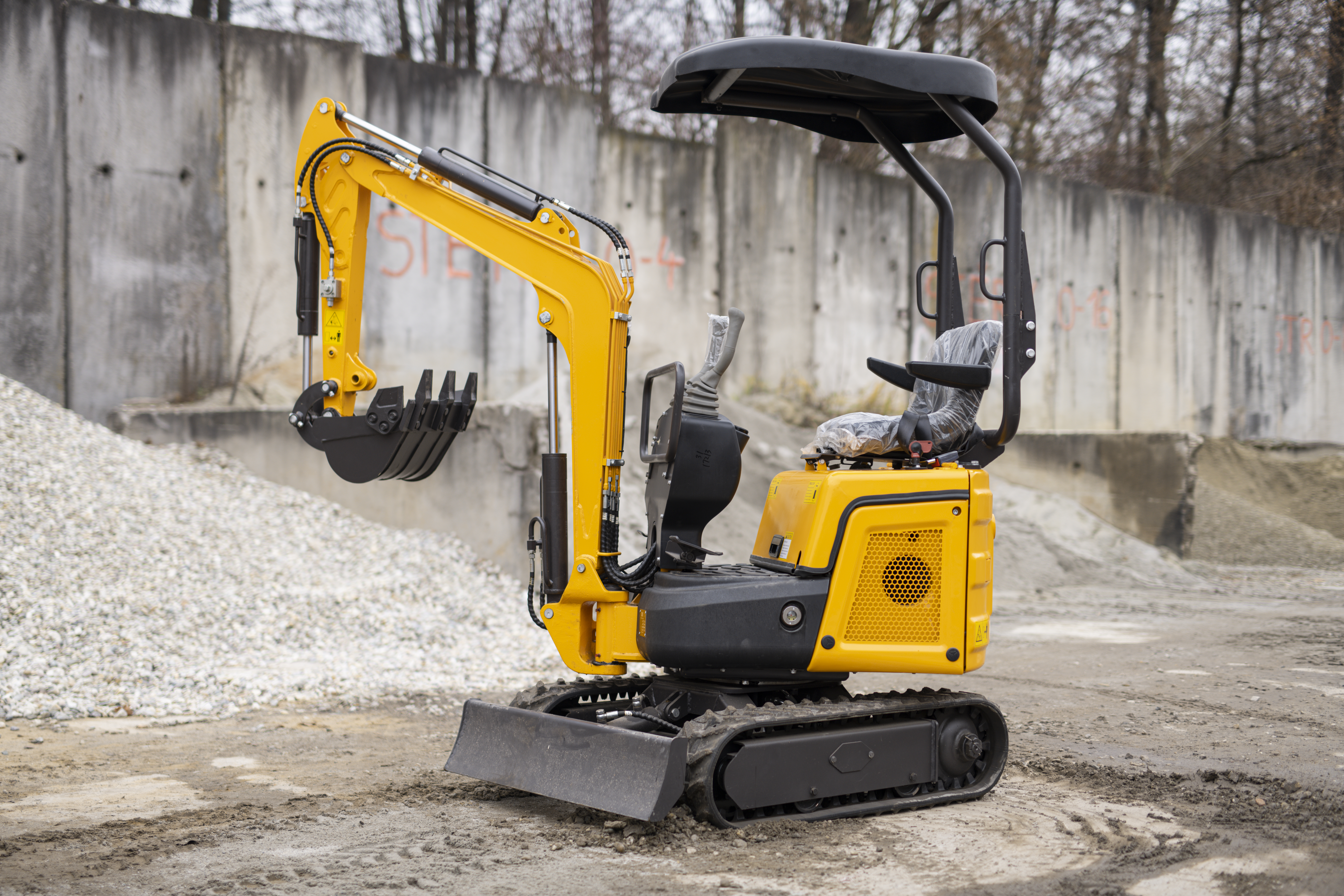- Stavební a demoliční práce: rozbíjení betonu, demolice opěrných zdí, základových patek, plotů nebo menších objektů.